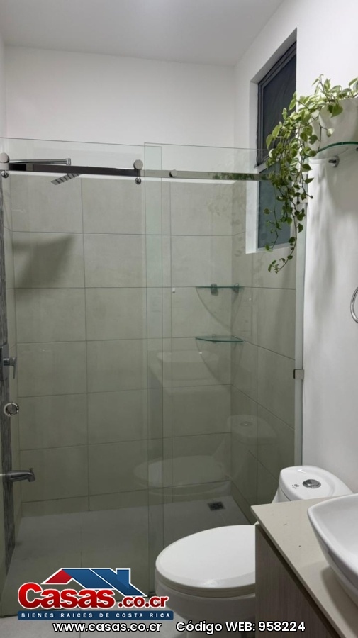 La distribución es cómoda y funcional: 2.5 baños estratégicamente ubicados, con baño de visitas en planta baja, baño privado en el dormitorio principal y baño completo para el segundo dormitorio. Ambos cuartos cuentan con clóset, abanicos y cortinas blackout, pensados para el descanso y la privacidad. Los baños están equipados con mamparas de vidrio y espejos de estilo moderno que elevan la experiencia diaria.