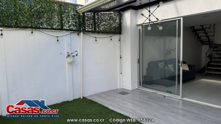 Casa moderna de dos niveles diseñada para disfrutar cada espacio. Destaca su patio amplio que se integra con la sala mediante una terraza techada con lámpara, paredes repelladas en blanco que aportan mayor luminosidad y zacate sintético de alta calidad que mantiene el área siempre impecable. Uno de los parqueos también incorpora zacate sintético, brindando una estética limpia y diferenciada desde la llegada.